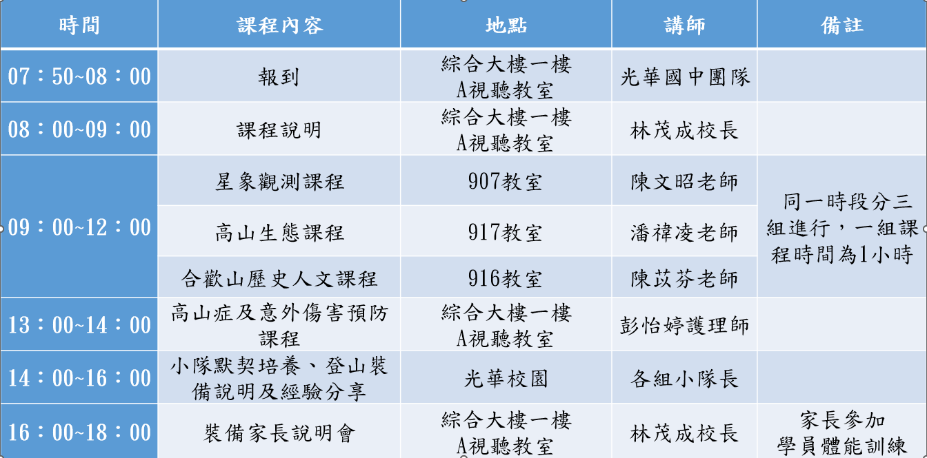 明日(10/18)合歡山探索學習課程課程內容如下,請參閱!