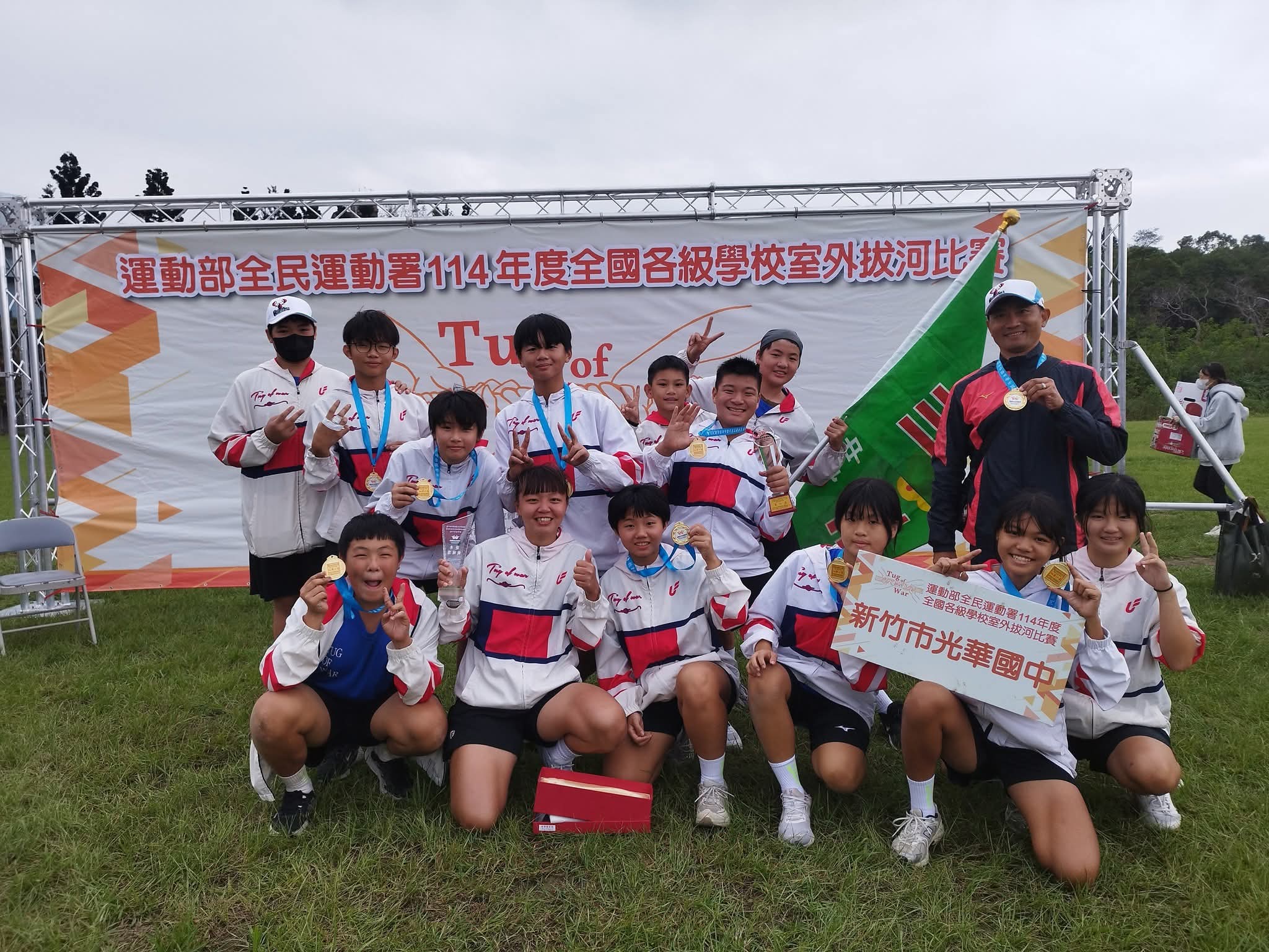 本校拔河隊在毛士文老師、李勻錡老師平日常態常規的訓練下,榮獲運動部全民運動署114年度全國各級學校室外拔河比賽 冠軍。