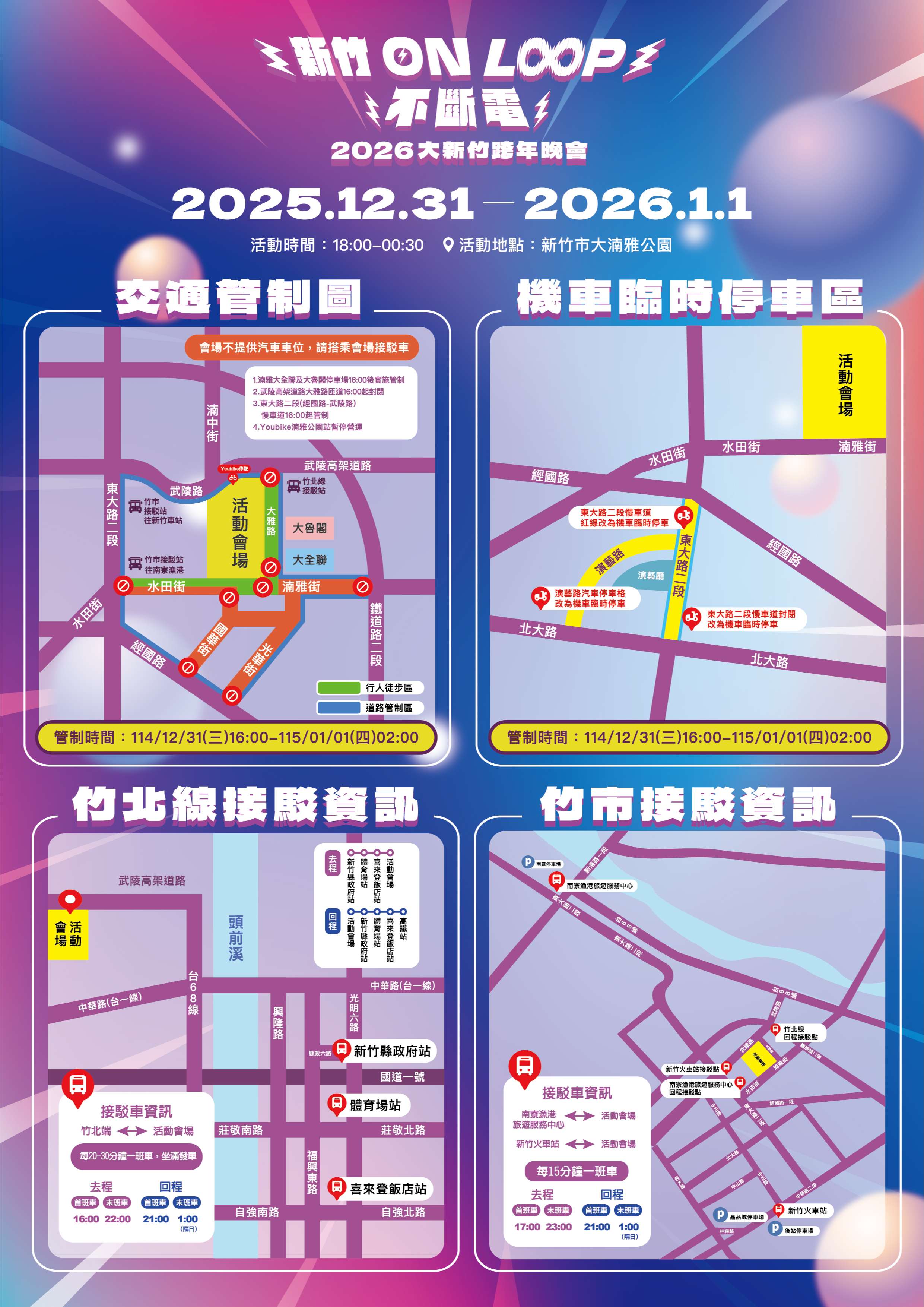 | 交通管制時間為114年12月31日(三)16時至115年1月1日(四)2時。交通管制路段包含東大路二段、大雅路、水田街及湳雅街等區域範圍。 |