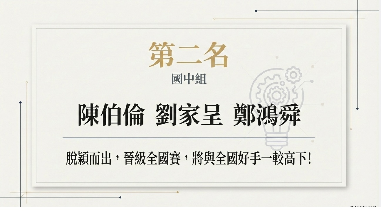 榮獲國中組第二名,將代表新竹市參加全國賽,