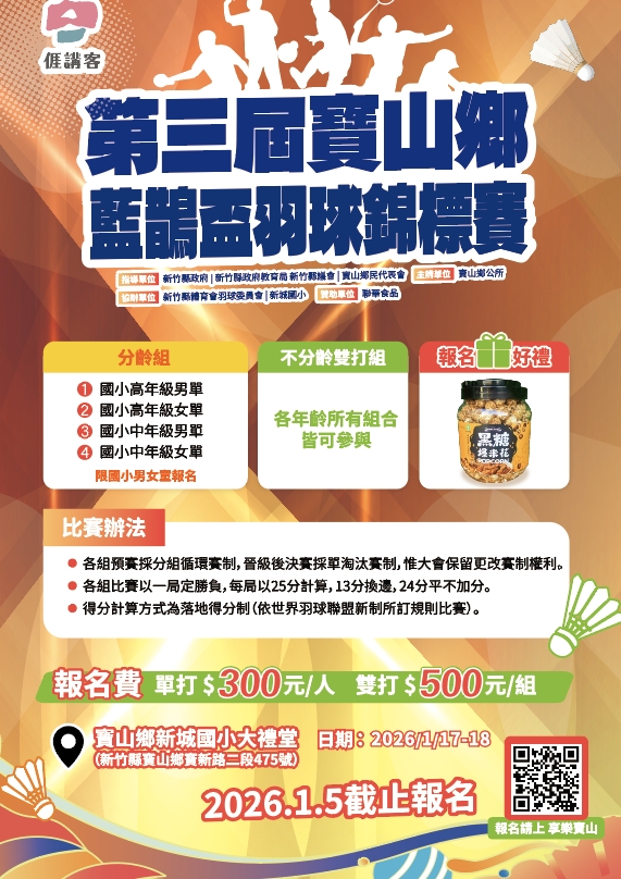 二、報名方式:請至「享樂寶山」網站報名,開放跨機關組隊報名,免收報名費。如有相關問題,請洽寶山鄉公